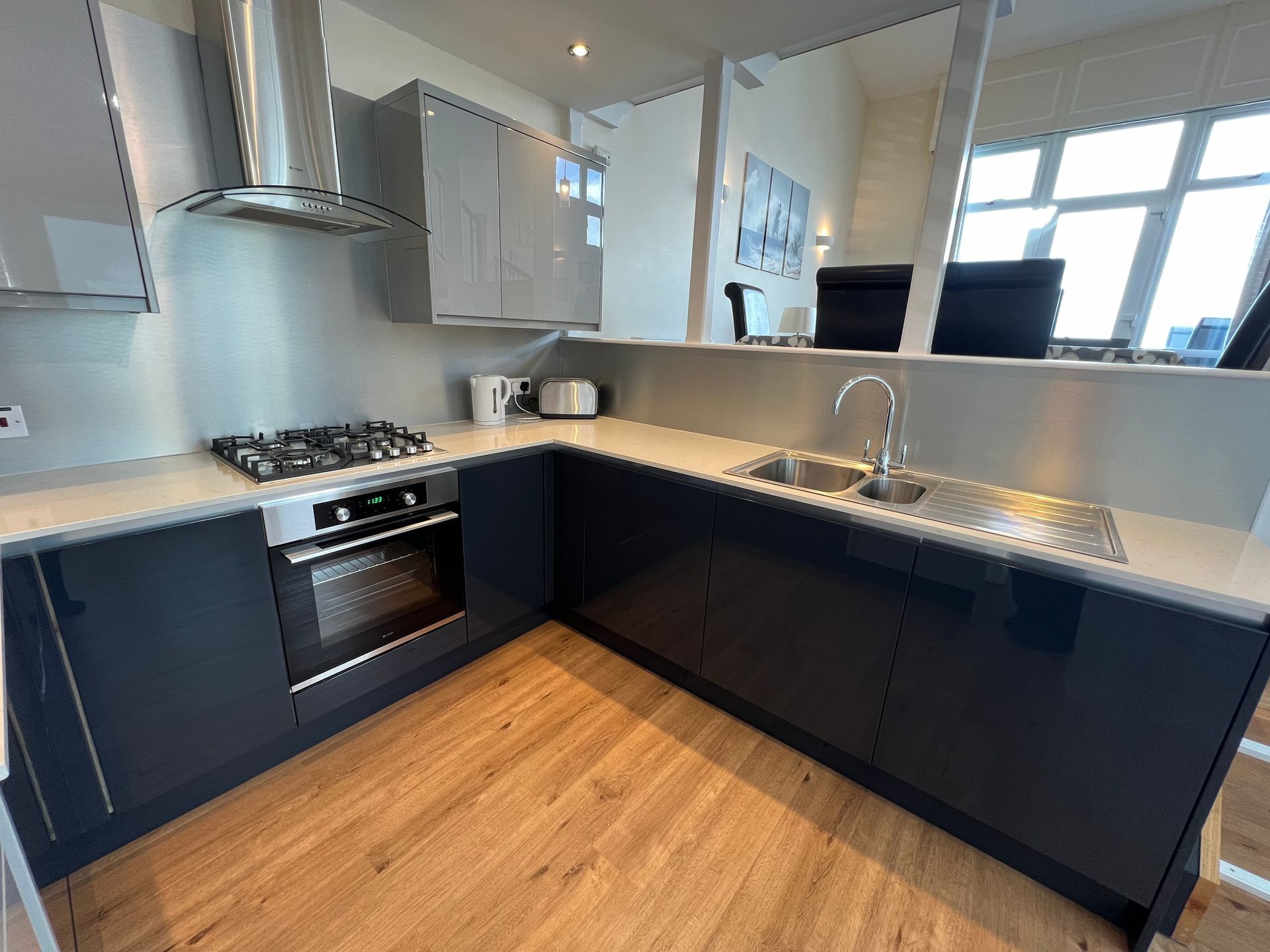 • Large, well equipped kitchen with gas hob and family sized fridge freezer